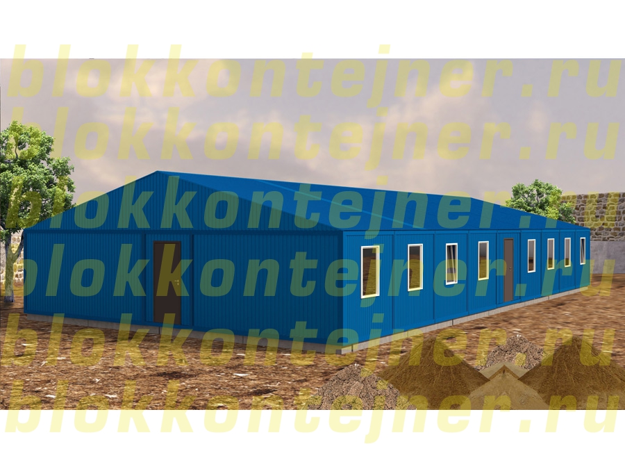Одноэтажное модульное общежитие для временного проживания строителей из 18-ти шт БК